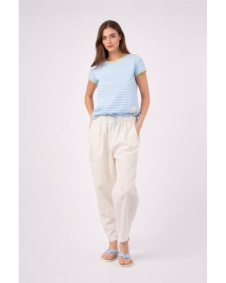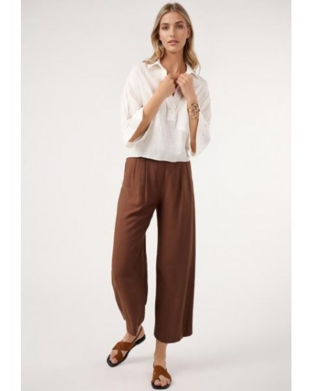 Pantalón fluido falso plisado. Conjunto CRUDO