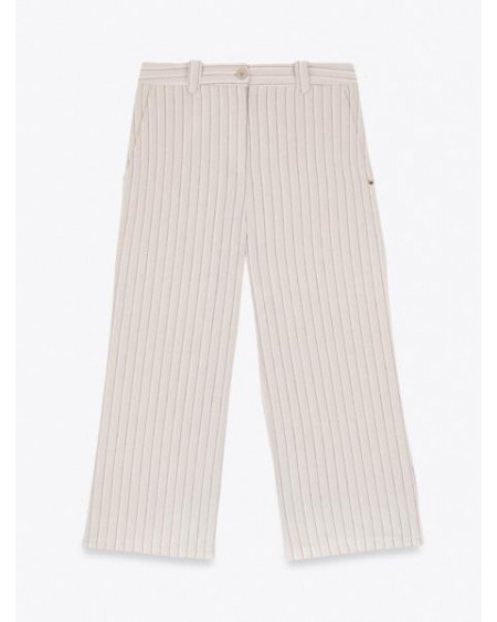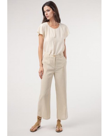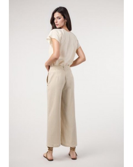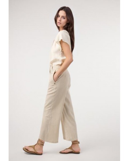 Pantalón culotte rayas lino. Traje BEIGE